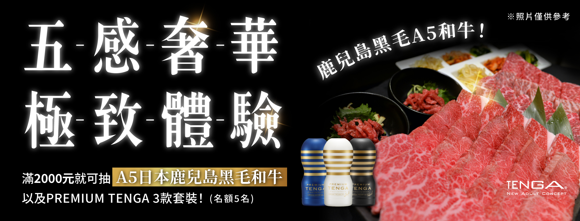 ②能獲得頂級日本A5鹿兒島黑毛和牛+PREMIUM TENGA套裝的抽獎資格(限量五套)