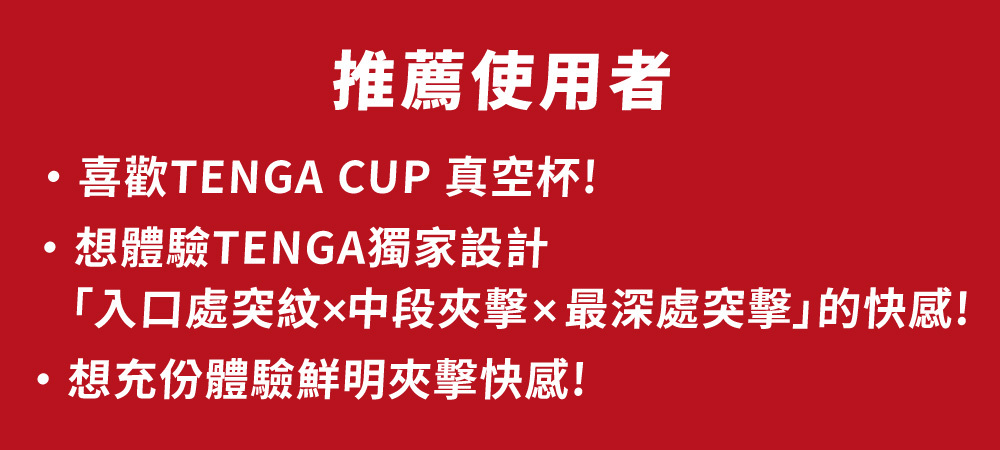 經典TENGA升級版,尺寸略大、膠體份量增加20%,擁有超立體、高密度內部紋路設計,搭配濃厚潤滑液,帶來前所未有的彈力與真空動感刺激。厚實入口與研缽形設計,讓挺進瞬間即刻有感,體驗超級巨浪般的快感。